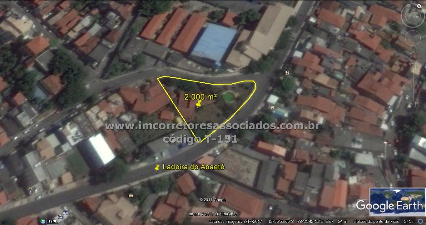 Terreno na Ladeira do Abaeté, esquina com Ladeira Olassá e em frente Colégio Rotary, 2.000 m², plano, pode ser residencial e comercial, frente de pista principal com bastante movimento, passagem para Lagoa do Abaeté.