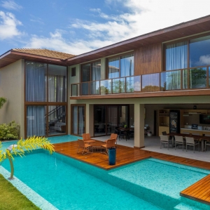 São 9 suítes em terreno de 700 m², tendo 650 m² construída, mobiliada, decorada e equipada com muito bom gosto e requinte, em condomínio a beira mar, com acesso a praia.