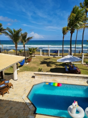 Casa 5 suítes de frente para o mar em Vilas do Atlântico, Lauro de Freitas, Bahia !Com acesso exclusivo e direto a praia, possui 5 suítes, sendo 1 térrea e 4 superiores, sendo 2 com varanda frontal frente mar, mobiliada decorada e equipada, exceto alguns itens de decoração, consultar.Edificada em terreno de 750 m², sendo 500 m² construída, possui sala ampla com 3 ambientes, varanda frontal, área gourmet coberta e com churrasqueira, piscina com cascata, cozinha, despensa, área de serviço. banheiro de serviço, área gourmet, piscina e área verde frontal mar, como pode ser observado nas fotos.