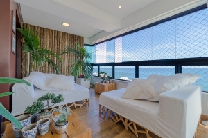 São 4 suítes, 238 m², andar alto, armários em todos os cômodos, sala ampla, vista mar panorâmica em localização privilegiada frente ao circuito do carnaval, varanda incorporada, lavabo, cozinha equipada, área de serviço e dependência completa, 3 garagens soltas.